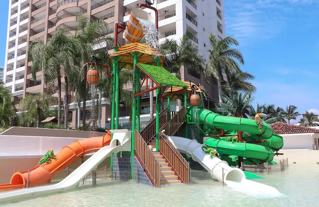 Sunscape Puerto Vallarta Resort, a 4-star family-friendly hotel, offers a variety of amenities including a water park, multiple dining options, and comfortable accommodations with ocean views. Located on a stretch of golden sand beach, the resort features an expansive main pool and a family entertainment program.