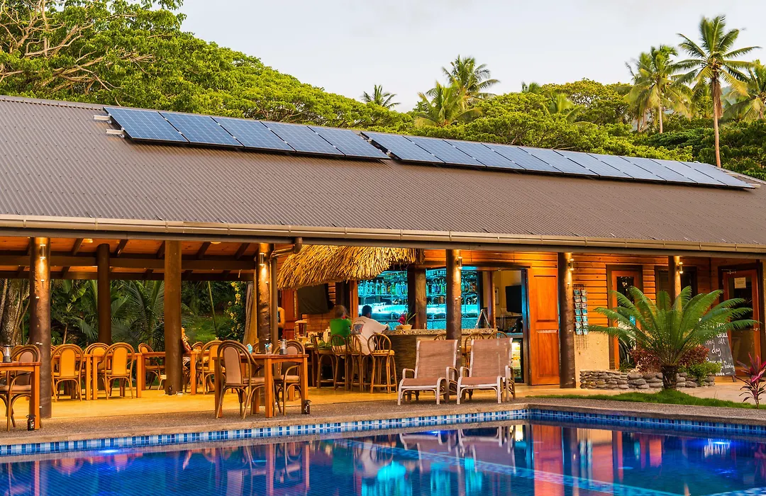 Dining options at the resort include the Salty Fox Bar & Grill, serving a menu featuring local Fijian dishes and western favorites. Guests can enjoy signature burgers made from the best beef flown in from Suva, as well as a variety of cooked-to-order breakfast items each morning. The restaurant is strategically located next to the infinity pool, offering stunning views of the Somosomo Strait.