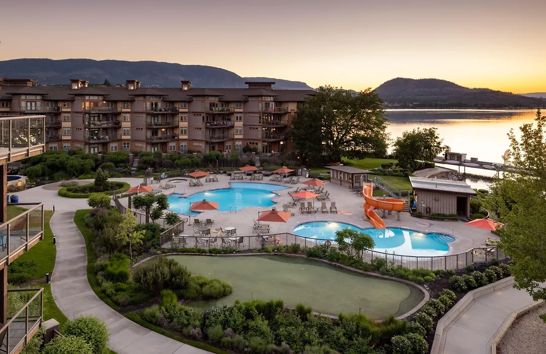 For business needs, The Cove Lakeside Resort provides customized event planning services and multiple venues with natural lighting and lake views. The resort is situated conveniently near local attractions like Mission Hill Family Estate Winery and Gellatly Nut Farm, enhancing guests' experiences.