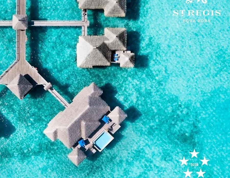 Escape to a five-star luxury getaway at The St. Regis Bora Bora Resort, featuring spacious overwater and beachfront villas with glass panel floors revealing the pristine lagoon. Notable amenities include a private Lagoonarium, multiple dining options including the suspended Lagoon Restaurant, and 24-hour Butler service.
