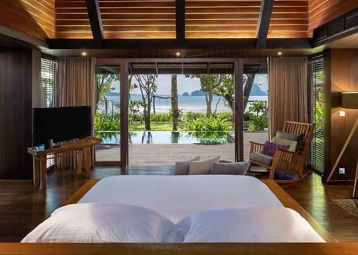 The Tubkaak Krabi Boutique Resort offers an exclusive escape surrounded by breathtaking natural scenery. This 5-star Tub Kaek Beach hotel features cozy accommodations, two beachfront dining options, and a luxurious spa. Guests can engage in various activities, from kayaking to yoga.