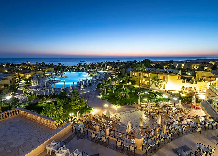 Three Corners Fayrouz Plaza Beach Resort offers a luxury all-inclusive experience with access to an 800-meter beach and proximity to Port Ghalib International Marina. This 5-star resort features a variety of dining options, multiple bars, and extensive recreational facilities, making it ideal for both families and couples.
