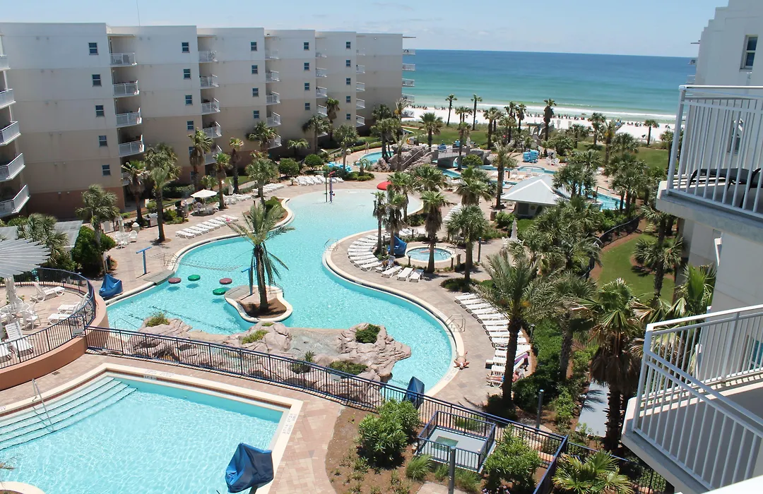 Waterscape Resort By Tufan, a 4-star Fort Walton Beach hotel rated 9.6/10 on Booking.com, features beachfront accommodations and a Grand Pool Complex with three swimming pools. Guests can access an outdoor swimming pool, fitness center, barbecue facilities, and the hotel's own bar.