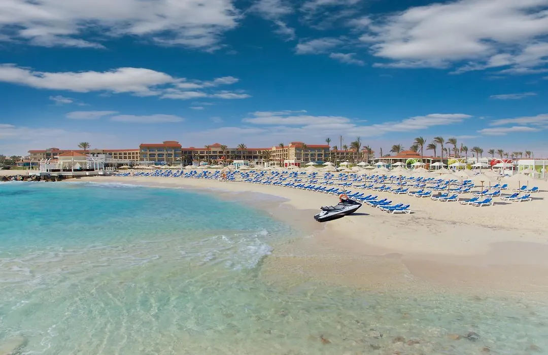Rixos Alamein offers guests various dining options, including four onsite restaurants serving Turkish, Lebanese, and seafood dishes. Beach and poolside bars provide snacks and soft drinks throughout the day.