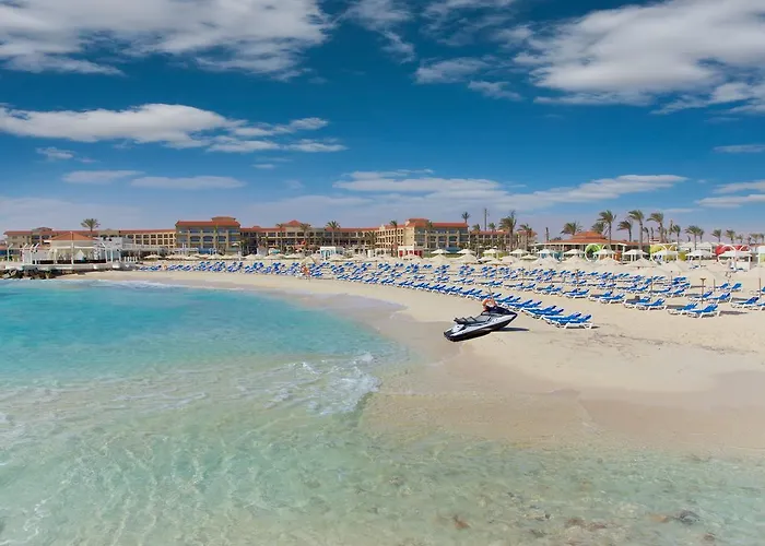 Rixos Alamein - Full Board Plus is a modern luxury resort with a beachfront location along the northern Mediterranean coast. The 5-star El Alamein hotel offers numerous amenities including a spa, multiple swimming pools, and a range of dining options featuring Turkish and Lebanese cuisine.