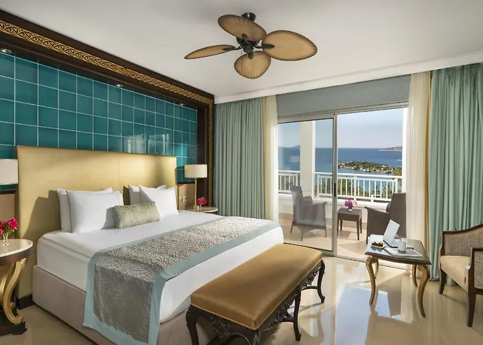 Rooms at Rixos Premium Bodrum include spacious accommodations with garden or sea views, featuring amenities such as air conditioning, a minibar, and flat-screen TVs. Selected units offer private pools and terraces for an exclusive experience.