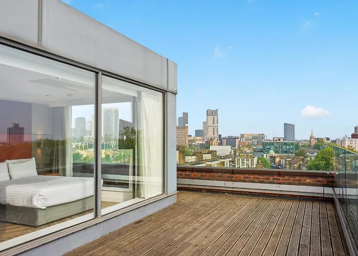 Roomzzz London Stratford (4-star) offers a modern stay with well-equipped serviced apartments featuring kitchenettes and free WiFi. The hotel includes a fitness center, a coffee shop, and a garden for leisure activities.