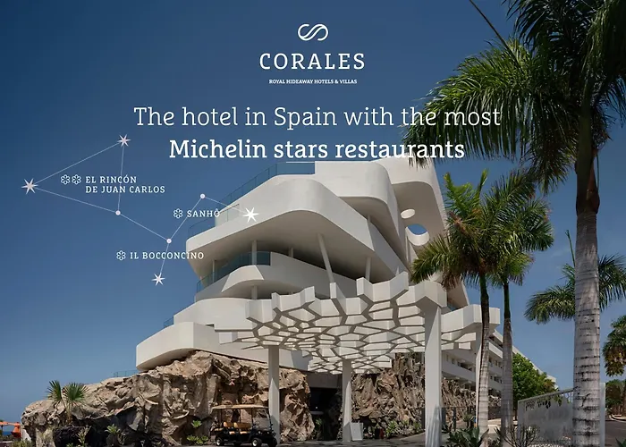 Royal Hideaway Corales Suites (Adults Only) offers luxury accommodation with a focus on wellness and gourmet dining. The hotel features Michelin-starred cuisine, three heated outdoor saltwater swimming pools, and a range of wellness programs. This 5-star Costa Adeje (Tenerife) hotel is designed for adults seeking tranquility and personalized experiences.