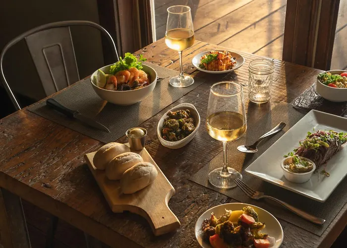 Dining at Sage Hill Inn includes an award-winning restaurant that utilizes fresh, local farm-to-table ingredients, including produce from the on-site garden. A complimentary three-course dinner is served nightly between 6:00 PM and 7:30 PM, along with a continental breakfast each morning.