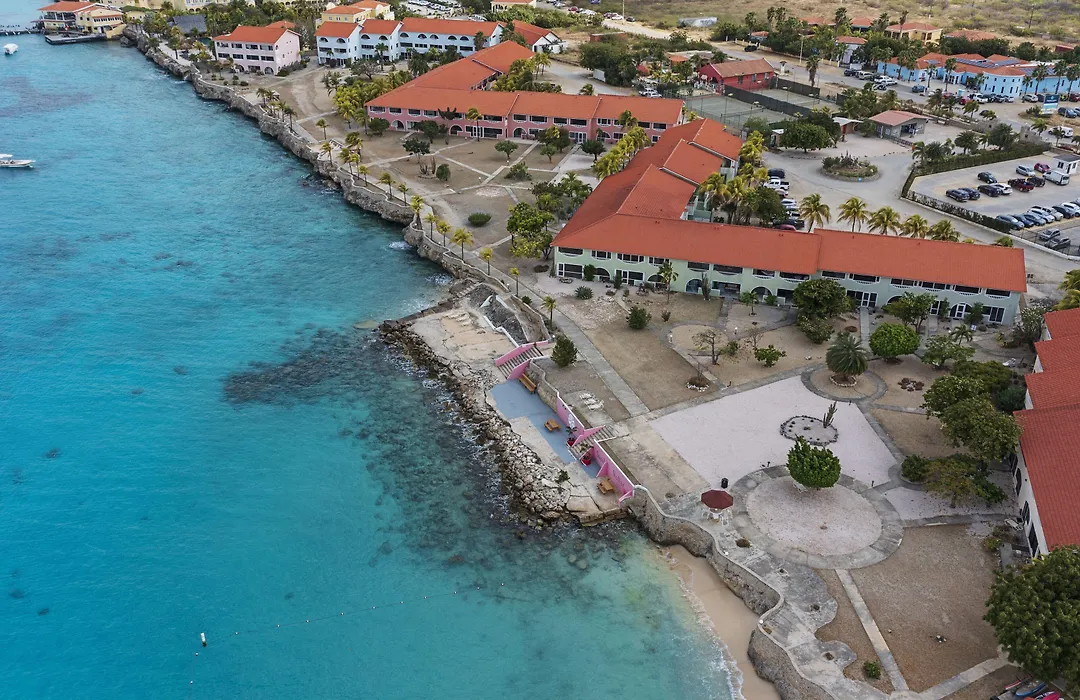 Sand Dollar Bonaire, a 4-star hotel rated 7.7/10 on Booking.com, features spacious oceanfront apartments with full kitchens and stunning sea views. Additional amenities include on-site restaurants and a private sandy beach area.