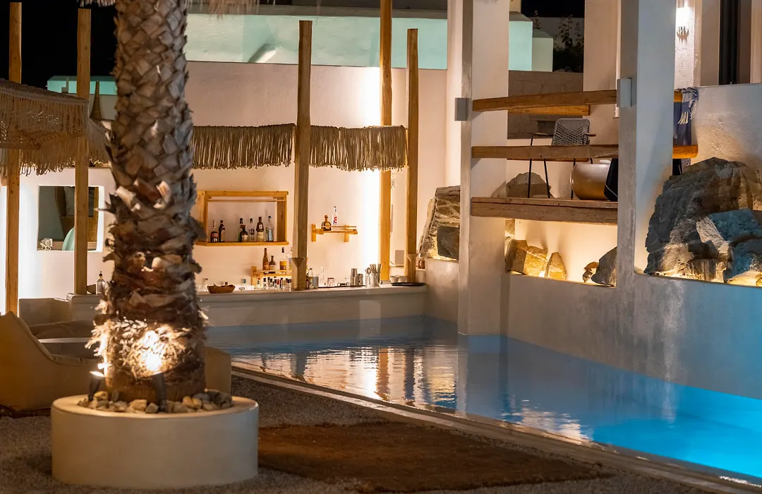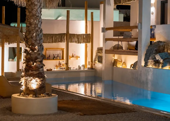 Sandaya Luxury Suites, rated 9.3/10 on Booking.com, offers exclusive accommodations steps away from the heart of Naousa. This 4-star hotel features a curated blend of Bohemian and Cycladic design, pools, a bar, and complimentary WiFi. Guests can unwind in uniquely designed suites with private outdoor hot tubs.