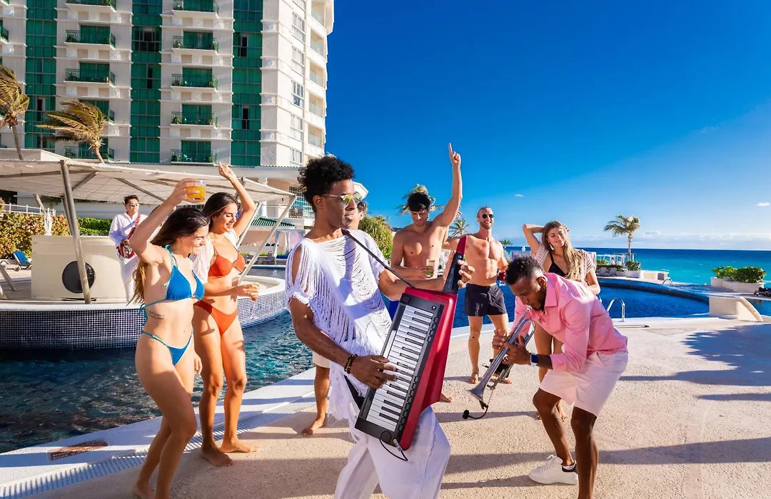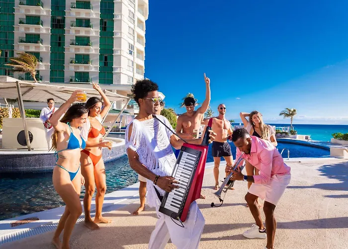 The Sandos Cancun also provides recreational facilities such as a luxurious spa, fitness center, and outdoor activities like kayaking and snorkeling. Guests can enjoy six swimming pools, including a swim-up bar and large hot tubs, catering to both relaxation and leisure.
