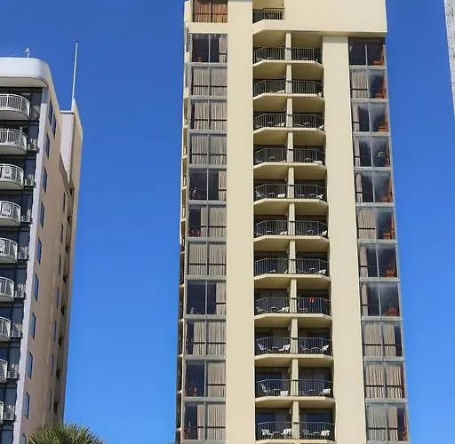 Schooner II Beach And Racquet Club offers a beachfront experience with 3-star accommodations and a Booking.com rating of 8.7. Guests enjoy direct beach access, an outdoor swimming pool, and tennis courts for recreation. This Myrtle Beach hotel features suites with fully equipped kitchens and private balconies with ocean views.