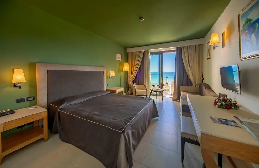 The hotel offers a private beach area with sun loungers, parasols, and a bar. Nearby attractions include the Arab-Norman Cathedral and the historic town center, accessible within a 5-minute walk along the seashore. Transportation options include bus services within a short walking distance.