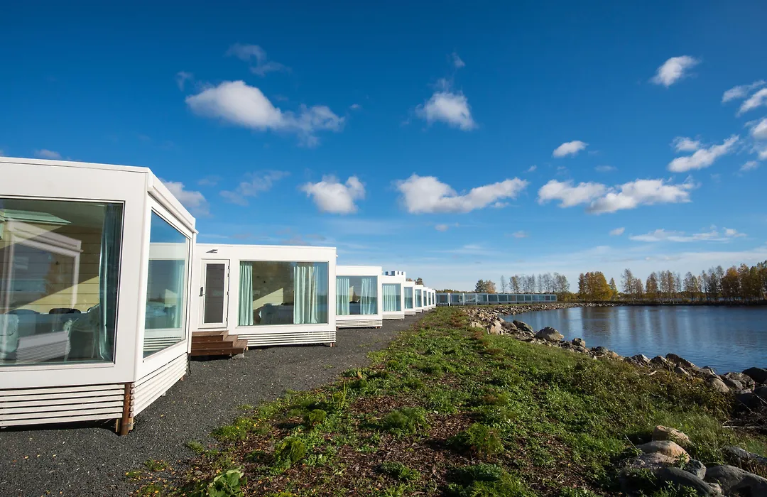 Seaside Glass Villas, a 4-star Kemi hotel, offers unique accommodations in the SnowCastle area, made of quality Finnish log wood. Each villa provides stunning sea views and modern amenities tailored for relaxation year-round.