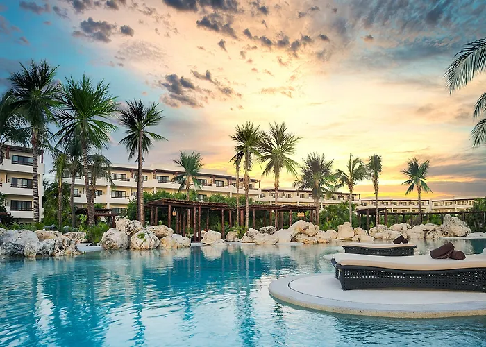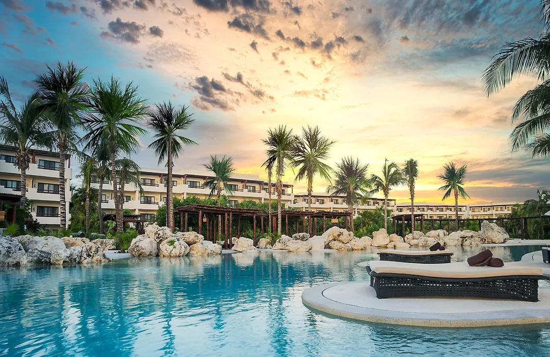 Secrets Maroma Beach Riviera Cancun - Adults Only (5-star, 9.1/10 on Booking.com) offers an all-inclusive experience with 412 deluxe suites and an AAA Five Diamond Award. The resort features 13 outdoor pools, a private beach, and a world-class spa, making it an adult-centric destination for relaxation and luxury.