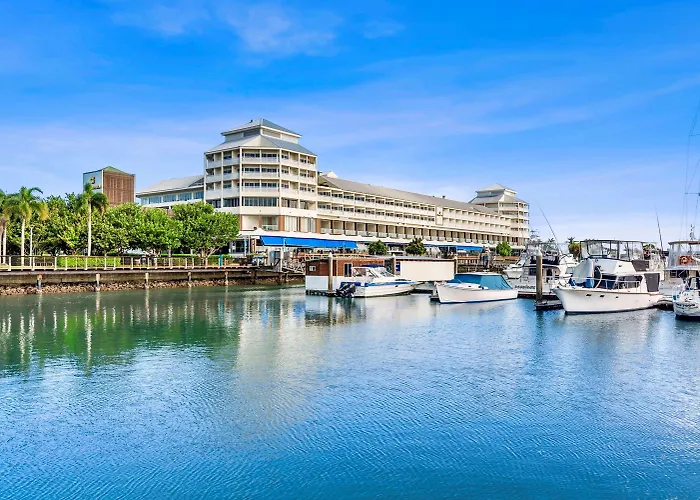 Shangri-La The Marina, Cairns is a 5-star hotel that features panoramic views across Marlin Marina and Trinity Inlet with direct beach access. The hotel offers a range of amenities, including an outdoor pool, wellness services, and dining options, making it a luxurious stay for both leisure and business travelers.