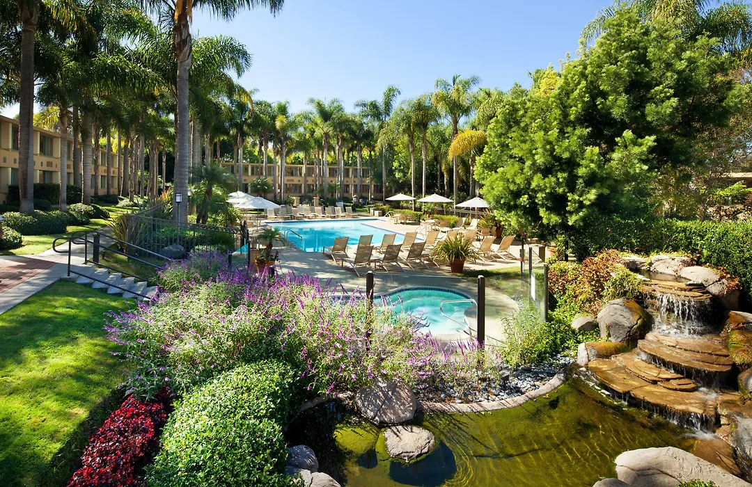 Guests can relax in the inviting garden courtyard with palm trees, koi ponds, and waterfalls. The Sheraton La Jolla also features a fitness center operational 24/7. Nearby attractions include Torrey Pines Golf Course and La Jolla Cove, located within a short drive.