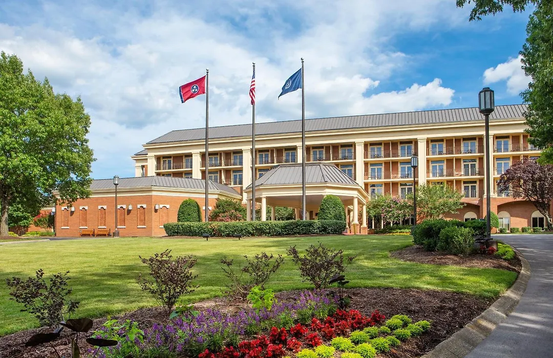 Sheraton Music City Nashville Airport is a 4-star hotel featuring elegant Georgian architecture, a heated indoor pool, and a seasonal outdoor pool. Guests can enjoy on-site dining options like Old Hickory Grill and Hill Top Eatery + Cocktails, along with 32000 square feet of meeting space. The hotel also provides a complimentary shuttle to Nashville International Airport, just 3 miles away.