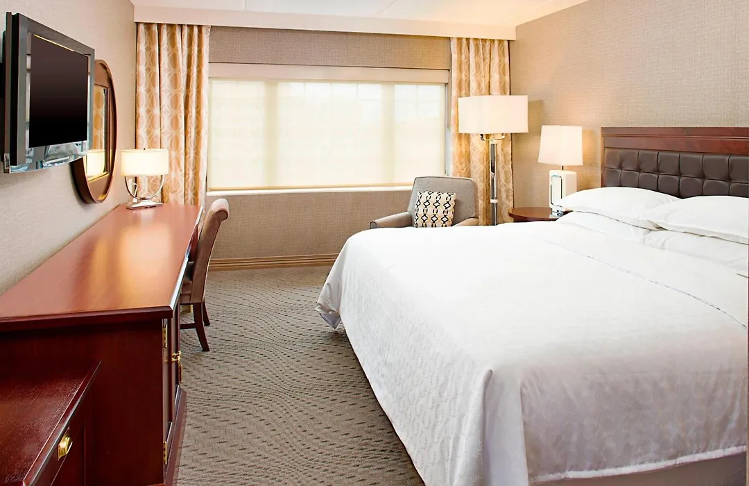 Rooms at Sheraton Rockville are equipped with air conditioning, flat-screen TVs, and tea and coffee facilities. Family rooms offer additional bedding configurations, adding versatility for guests. The hotel emphasizes accessibility with features like roll-in showers and mobility accessible rooms.