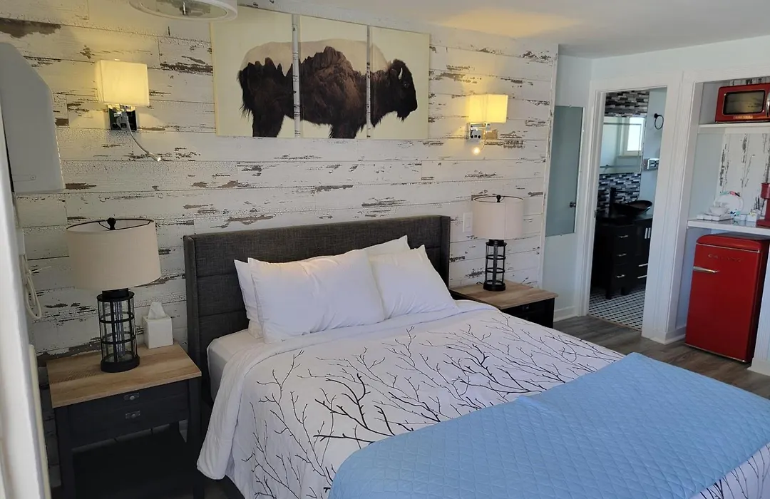 Silver Ridge Lodge features 35 accommodations equipped with refrigerators, microwaves, and Keurig coffee makers. Each room includes a private bathroom, with options for double queens and king suites offering spacious layouts, private entrances, and 55" 4K Smart TVs.