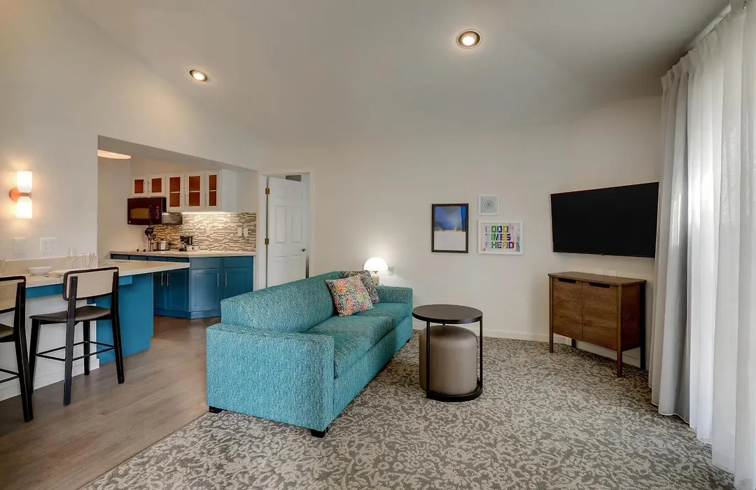 Each luxury suite at Sonesta Es Suites features a fully equipped kitchen, separate living room, and large desk with free high-speed internet access. Some suites include amenities like a whirlpool bathtub and all rooms provide air conditioning and heating.