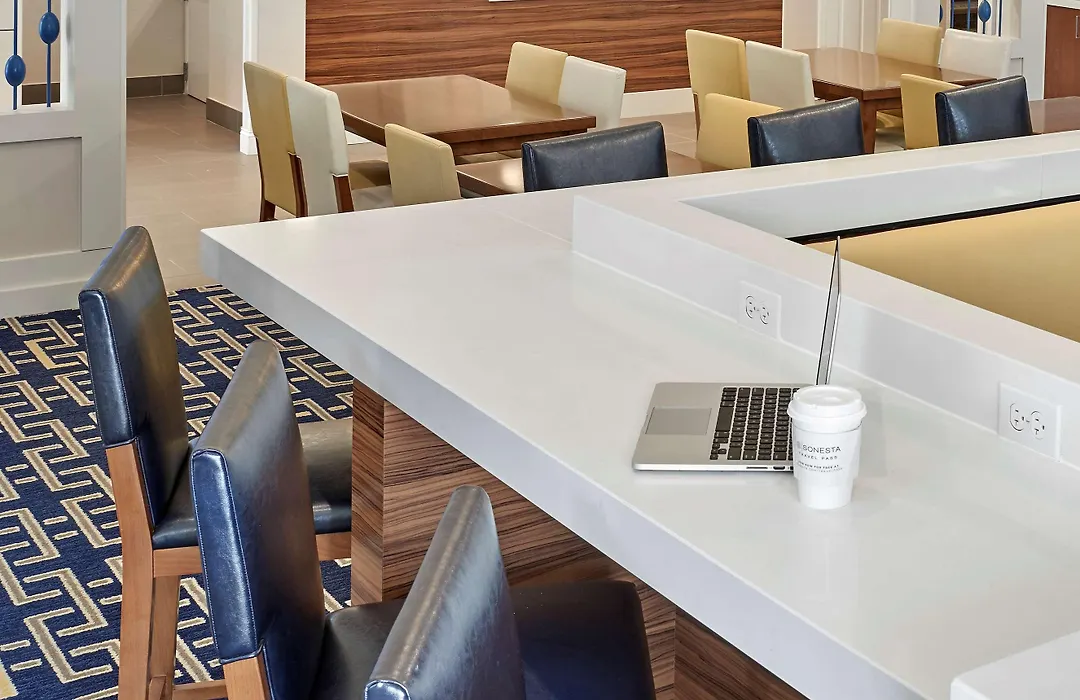 The oversized one- and two-bedroom suites at Sonesta Es Suites Burlington include roomy work areas, flat-screen TVs, and all essential kitchen appliances like a stove, refrigerator, and microwave. Each suite is designed for comfort, featuring separate living areas and convenient amenities.