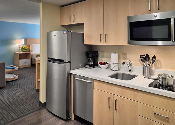 Sonesta Es Suites provides 81 air-conditioned suites, each featuring a kitchen, flat-screen TV, and seating area. Private bathrooms with showers and hairdryers are standard in every room.