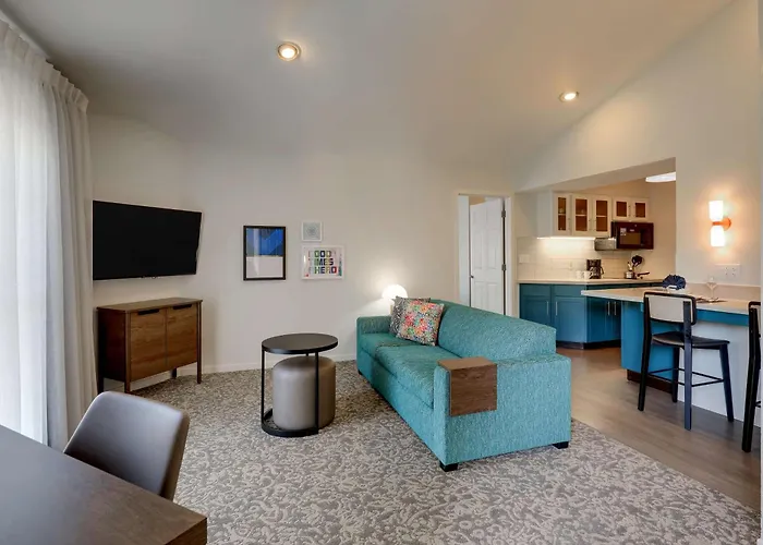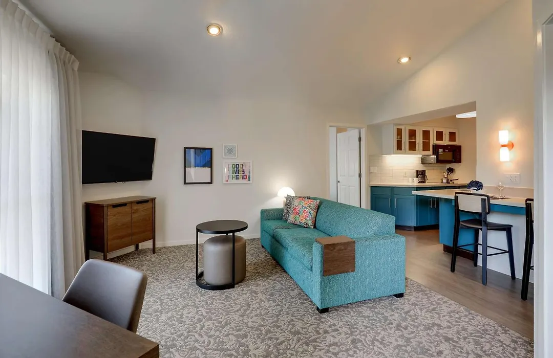 Sonesta Es Suites Sunnyvale offers spacious one and two-bedroom suites with fully equipped kitchens and living/dining areas. This 3-star Sunnyvale hotel features a free grab and go breakfast and recreational facilities including an outdoor pool and fitness center.