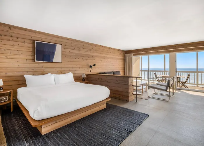 Guest rooms at Sound View Greenport are uniquely designed with influences from classic modernist, beachside homes. Options include suites with private hot tubs and oceanfront decks allowing direct access to the beach.
