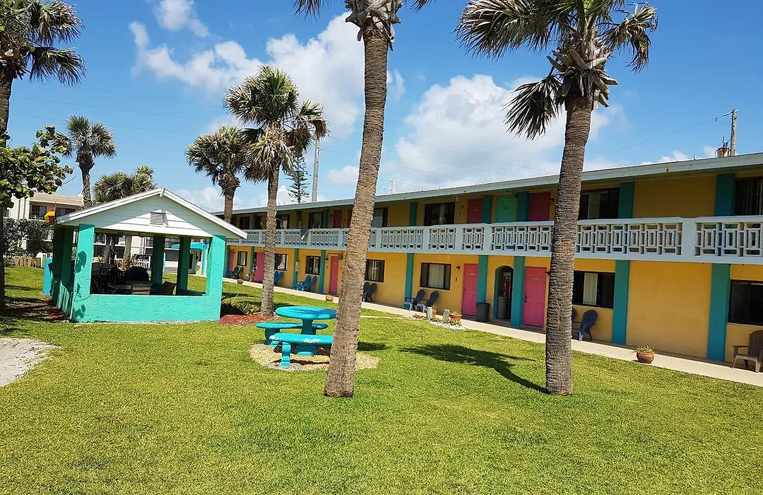 Family and pet-friendly South Beach Inn - Cocoa Beach offers direct beach access and features vibrant colors reflecting Old Florida charm. This 2-star Cocoa Beach hotel specializes in beachfront experiences with fully equipped suites and lush tropical landscapes.