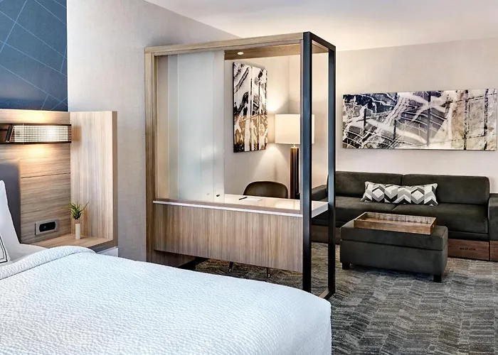 Guest suites at Springhill Suites are designed for comfort, featuring air conditioning, luxurious bedding, microwaves, mini-fridges, large work desks, free WiFi, and spa-like bathrooms. Selected accommodations provide additional conveniences for a restful night.