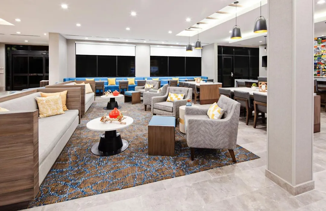 Guests can enjoy a complimentary breakfast buffet featuring a variety of fresh options. On-site dining includes a bar offering chef-inspired light bites and cocktails.