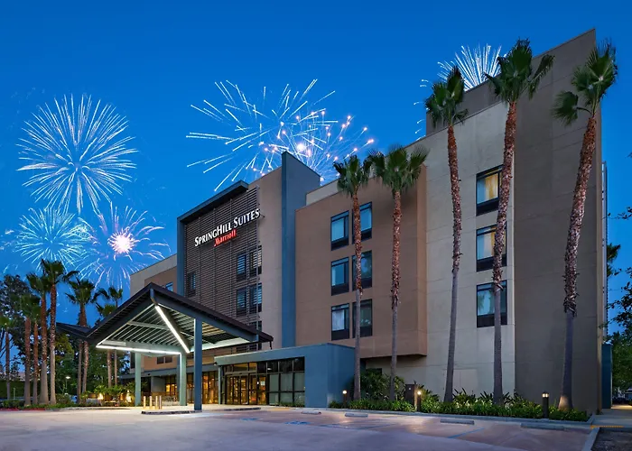 Springhill Suites By Marriott Anaheim Maingate offers family-friendly accommodations, featuring a daily free hot breakfast, outdoor heated pool, and pet-friendly options. This 3-star Anaheim hotel boasts amenities tailored for comfort and convenience, including a fitness center and business facilities.