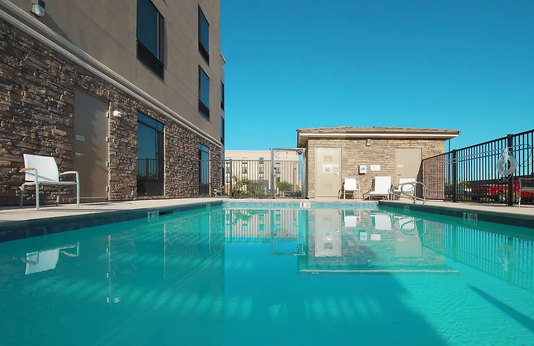 Springhill Suites By Marriott Las Vegas North Speedway is a 3-star hotel rated 8.6/10 on Booking.com, featuring modern suites and a seasonal outdoor pool. Guests enjoy a complimentary breakfast with fresh choices and access to a fitness center.