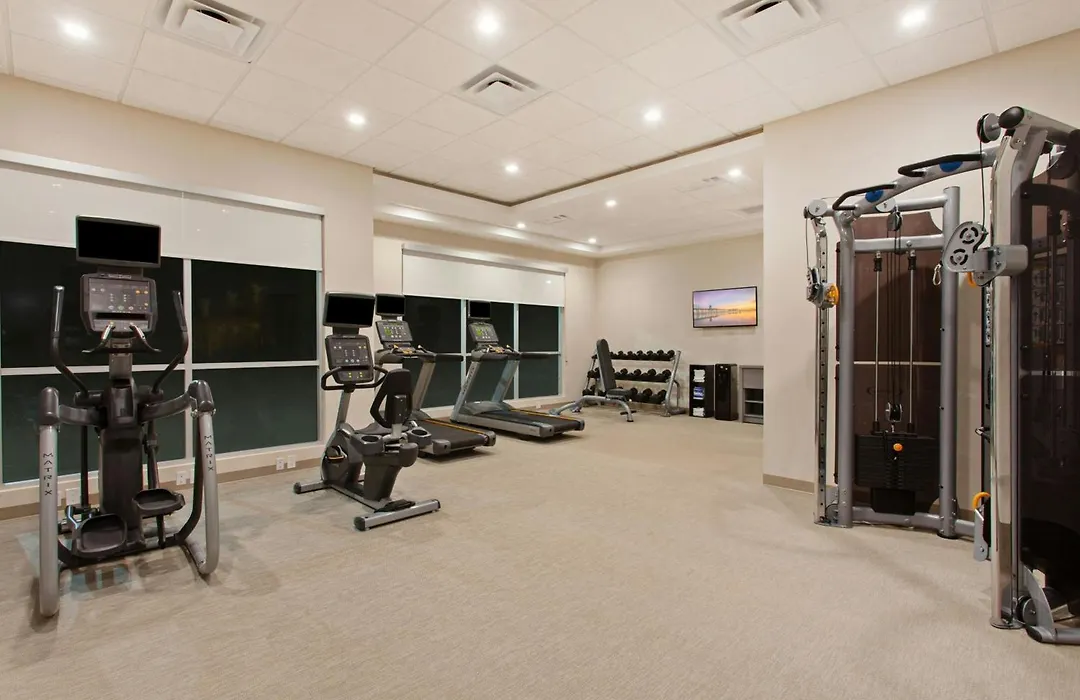Guests start their day with a complimentary hot breakfast that includes items like breakfast sandwiches, scones, and Greek yogurt. For dining options, guests can stop by the bar for light bites and cocktails, or visit nearby restaurants including BJ's Restaurant & Brewhouse and Romano's Macaroni Grill.