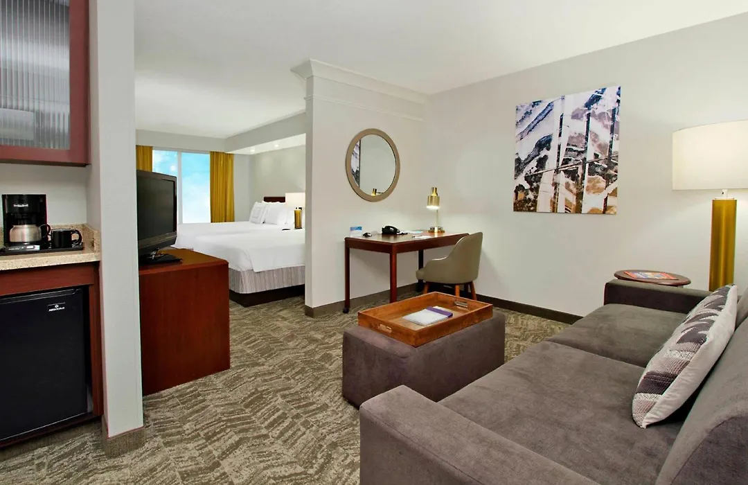 The hotel features 132 spacious studio suites designed with separate areas for relaxation and work. Room amenities include a flat-screen TV, refrigerator, microwave, and a pull-out sofa bed. All suites provide conveniences such as free Wi-Fi and premium bedding.