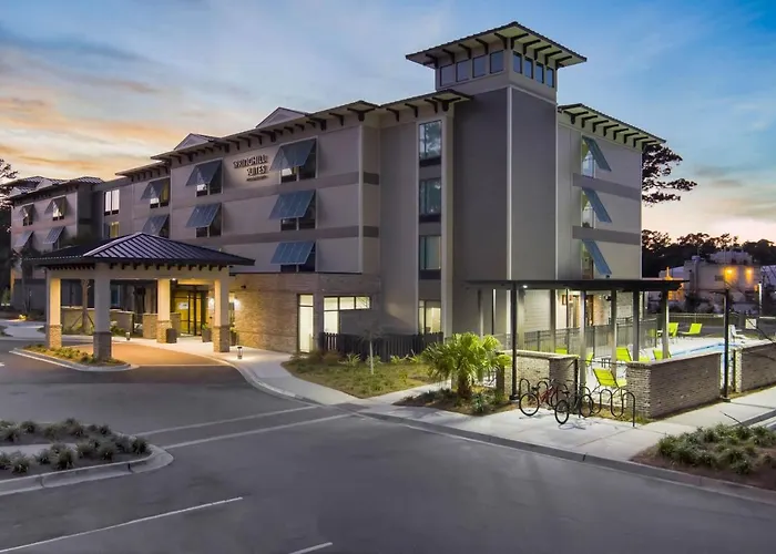 Springhill Suites Hilton Head Island offers all-suite accommodations with modern amenities and an overall rating of 8.6/10 on Booking.com. This family-friendly hotel features a relaxing outdoor pool and is located a short drive from local attractions. Guests enjoy complimentary breakfast with fresh options.