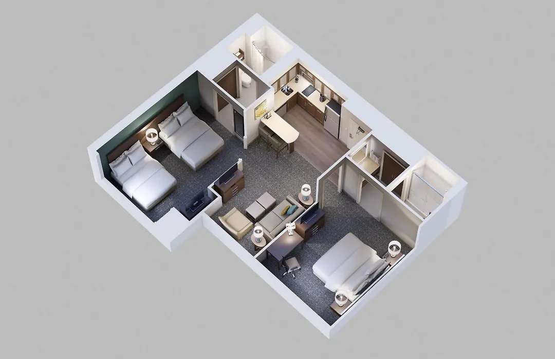 Accommodations at Staybridge Suites Coeur D'Alene include studio, one-bedroom, and two-bedroom suites, designed for flexibility and comfort during any trip duration. Each suite features a full kitchen equipped with a refrigerator, microwave, cook-top stove, and dishwasher, along with complimentary Wi-Fi and flat-screen televisions.