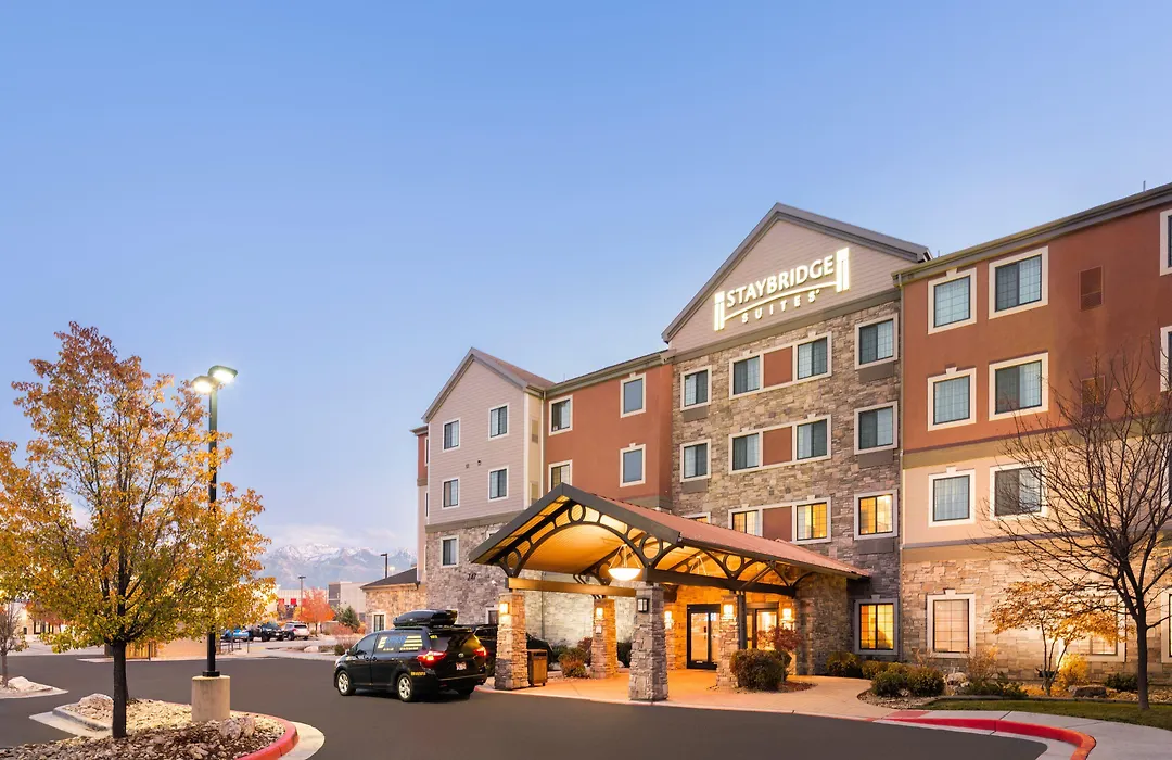 Staybridge Suites Midvale By IHG is a 3-star hotel known for its clean, quiet, and affordable accommodations. This facility features amenities such as a heated outdoor pool, a fitness center, and fully stocked kitchens in all suites. Guests can enjoy a complimentary hot breakfast with healthy options.