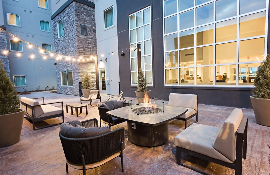 Staybridge Suites offers 111 air-conditioned rooms that include a flat-screen TV, seating area, and private bathroom with free toiletries. Each suite is designed with a fully equipped kitchen featuring a cooktop, microwave, full refrigerator, and dishwasher, providing the flexibility needed for longer stays.