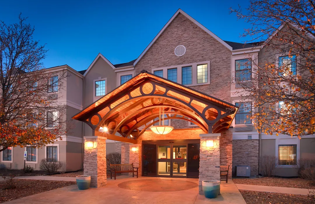 Staybridge Suites offers spacious studio, one-, and two-bedroom suites equipped with a fully-equipped kitchen, separate living area, and free Wi-Fi. Breakfast includes hot items like scrambled eggs and sausage, available daily from 6:30 AM to 9:30 AM. Guests can enjoy an evening reception on Mondays, Tuesdays, and Wednesdays from 5:30 PM to 7:30 PM.