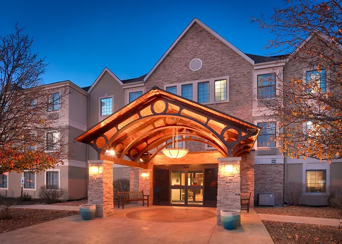 Staybridge Suites Peoria Downtown By Ihg is a 3-star, all-suite, pet-friendly hotel featuring a heated indoor pool and free Wi-Fi. The hotel offers amenities like a 24-hour fitness center, complimentary breakfast, and evening social receptions three times a week.