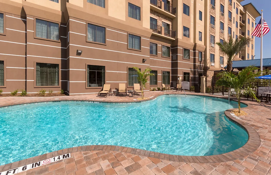 Staybridge Suites Orlando At Seaworld By Ihg - Free Parking & Shuttle To Seaworld Parks is a 3-star Williamsburg hotel offering spacious suites with fully equipped kitchens and a complimentary hot breakfast. This hotel provides a heated outdoor pool, a fitness center, and complimentary scheduled transfers to SeaWorld and Aquatica parks.