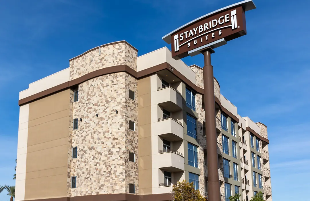 Staybridge Suites Las Vegas - Stadium District offers a welcoming experience with a full hot breakfast and pet-friendly accommodations. This 3-star Las Vegas hotel features amenities such as a fitness center and outdoor heated pool, ideal for both short and long stays.