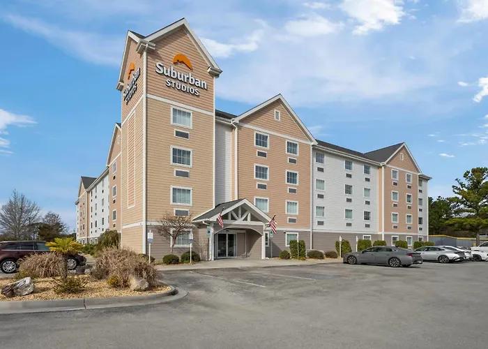 Suburban Studios Near Camp Lejeune offers affordable weekly and monthly rates along with convenient amenities tailored for extended stays. This 2-star Jacksonville hotel features kitchens in each of its 121 rooms and provides easy access to local attractions.