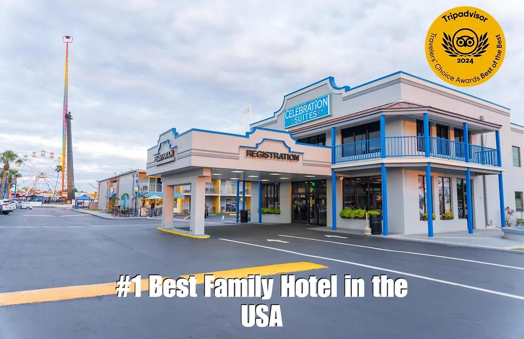 Celebration Suites offers spacious, suite-style accommodations designed for families, boasting a 3-star rating and a 9.1/10 score on Booking.com. Amenities include three outdoor pools, a game room, and a 24-hour fitness center. This pet-friendly hotel is located adjacent to Old Town and Fun Spot America.