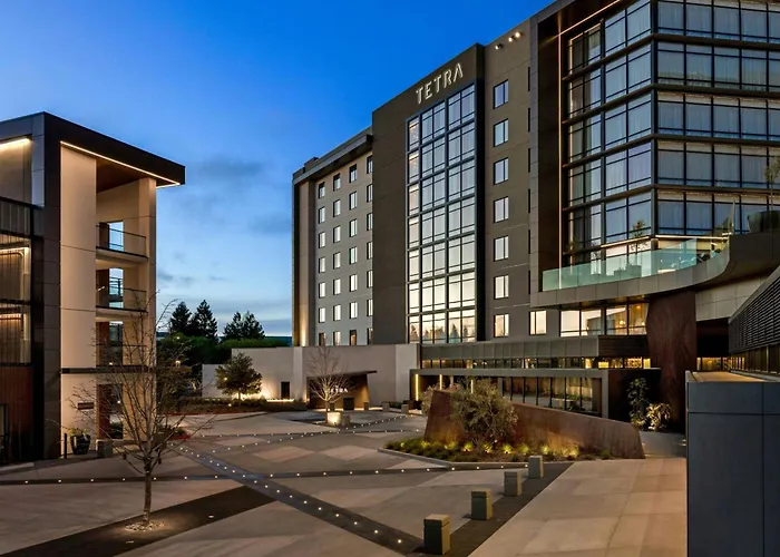 Tetra Hotel, Autograph Collection is a 4-star Sunnyvale hotel offering 186 rooms and 14 suites, designed with a soothing decor. On-site amenities include a nature-inspired pool deck, dining options, and extensive meeting spaces.