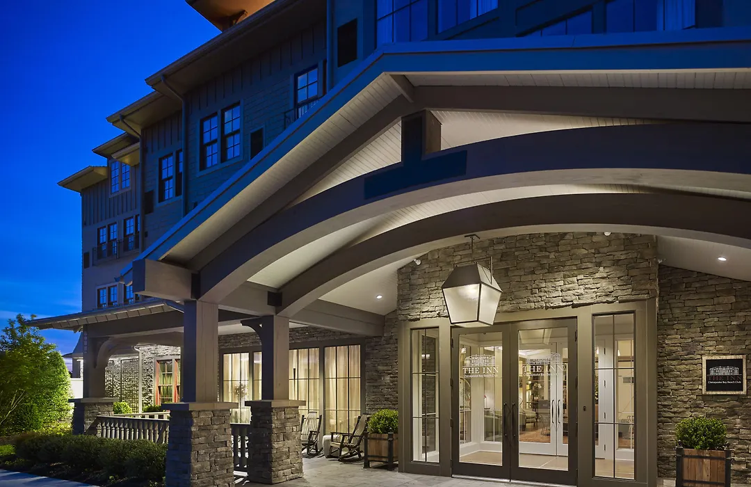 The Inn At Chesapeake Bay Beach Club is a 4-star luxury boutique hotel featuring 77 elegantly appointed guest rooms and access to a private beach. This Stevensville hotel offers amenities like a seasonal outdoor swimming pool, fitness center, and full-service spa, alongside exceptional dining options including Knoxie's Table and The Market.