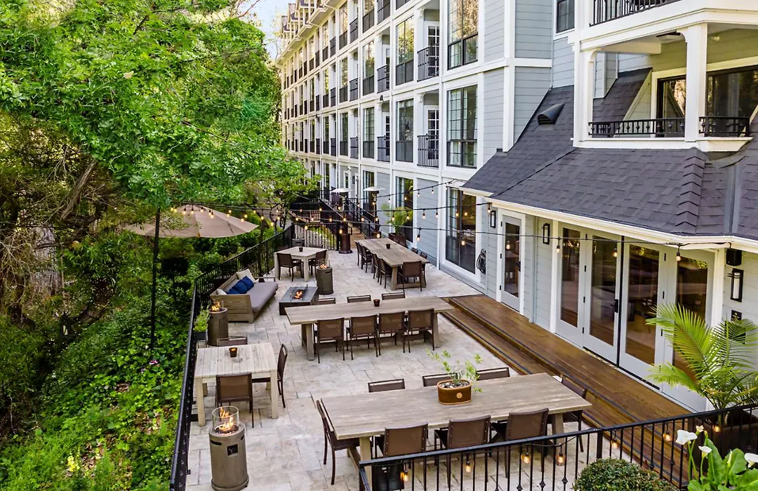 The Heid restaurant and bar serves a European-style breakfast daily and offers a selection of seasonal bites and classic cocktails. Guests can also dine on the creekside patio for a more scenic experience.